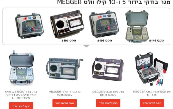 כלי עבודה מה הופך את חברת “מגר” לחברה מובילה בתחומה? חברת מגר מעצבת ומייצרת ציוד נישא לבדיקת חשמל. מוצרי Megger מסייעים לכם להתקין, לייעל, להפחית עלויות ולהאריך את חיי הנכסים החשמליים של לקוחותיכם. קרא עוד