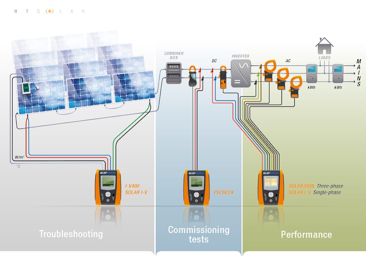 בדיקת ביצועים – רישום והשוואה של נתוני ביצוע הם הכרחיים למערך האחזקה היעיל של המערכת . המכשירים מדגמים SOLAR I-Ve , SOLAR300N , MPP300 הם המתאימים למטרה זו